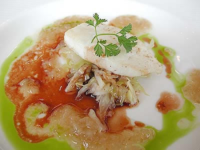 ![]() 平目のポワレ プランタニエールスタイル ソースはフォンドヴォーにバジルとエシャロットのソース ザワークラウトが敷かれていました |