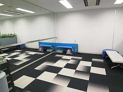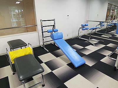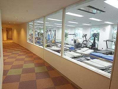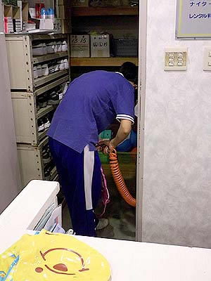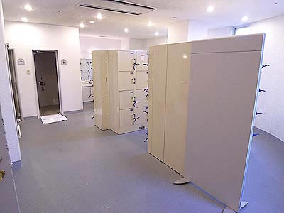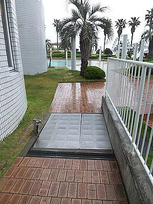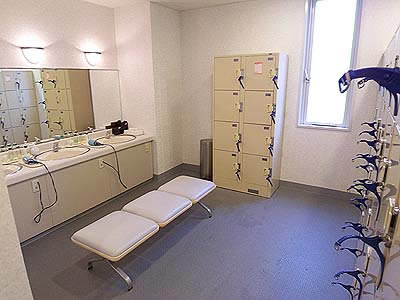 更衣室の前を通り、屋外へ出入りできる通路 |