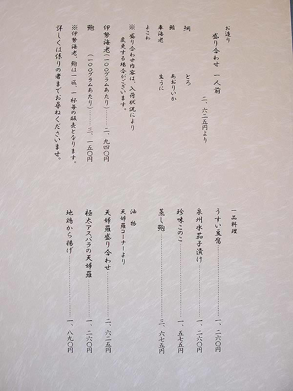 ![]() 造里 白浜産鯛 串本産鮪 さごし 車海老 |