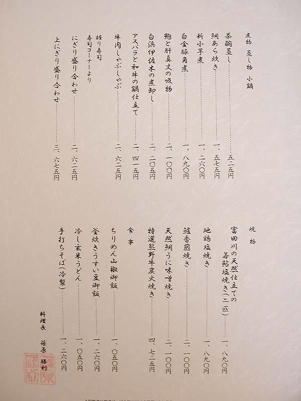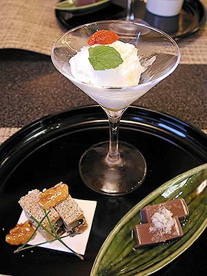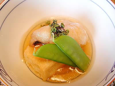 ![]() 椀盛 新蓮根すり流し 油目 玉子豆腐 浜防風 蓬麩 柚子 |