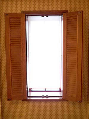 ![]() ベッドの横には明かり取りの窓があり、 ロールスクリーンがあります |