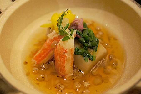 ![]() 蒸し物 蟹と海老芋の蕎麦の実餡掛け |