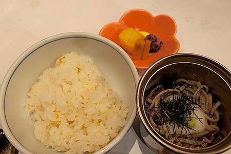 ![]() 御食事 雲丹御飯、一口冷し蕎麦 |