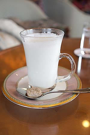 | 翌朝は朝食後、体調を崩した女房が身体を温めたいと 季節限定でお勧めのジンジャーミルク630円 |