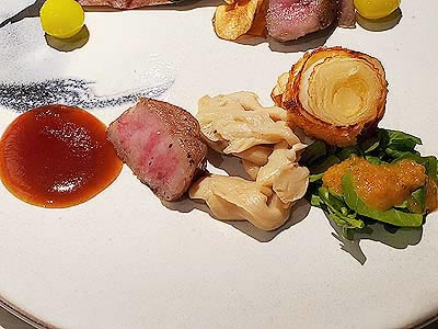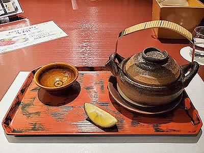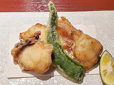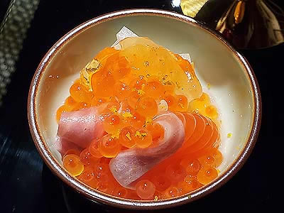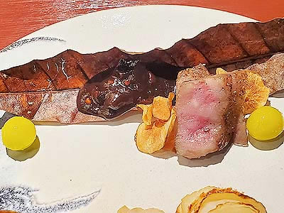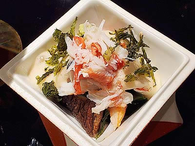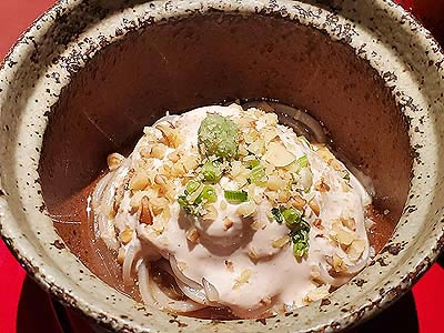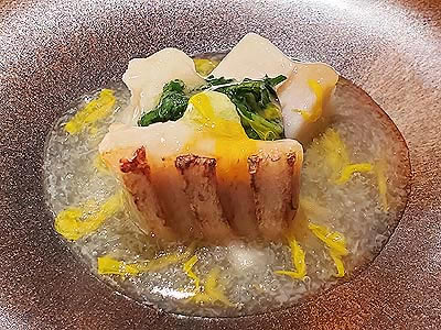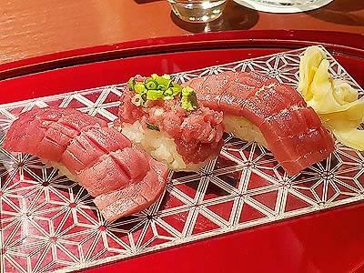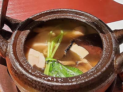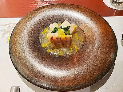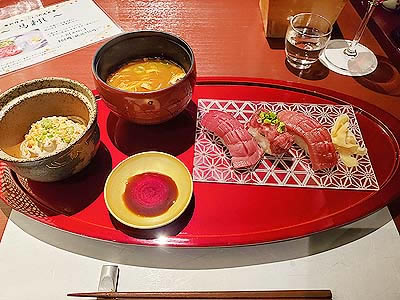 ![]() 御食事 天然本鮪握り鮨と胡桃蕎麦 又は 甘鯛と野沢菜の御飯 袱紗仕立て 香の物 |