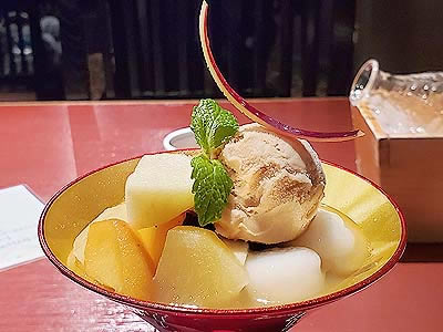 | 水菓子 | 信州産林檎(信濃ゴールド、秋映)と和三盆アイスの餡蜜 |