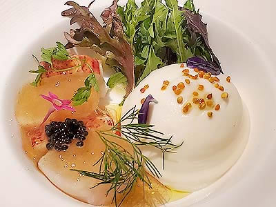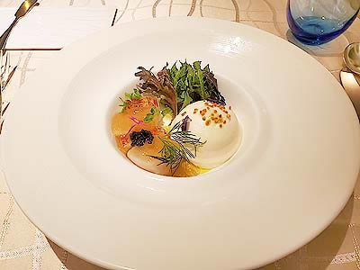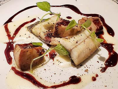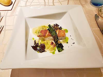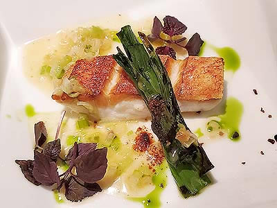 ![]() 豊洲市場より本日の旬魚(尾長鯛)のポワレ 九条葱のバターソースと醤油パウダー |