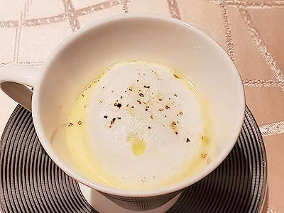 ![]() 季節野菜のスープ 熟成さつまいものスープ ミルクの泡 |