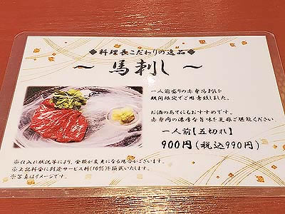 ![]() 馬刺しの追加が可能との事 |