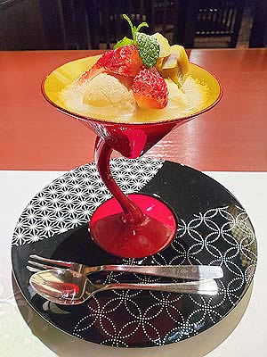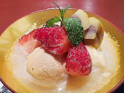 ![]() 小布施の栗と信州産林檎 和三盆アイスの餡蜜 あまおう 茅野寒天 |