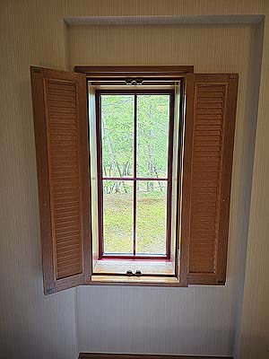 ![]() 窓には折れ網戸が収納されています |