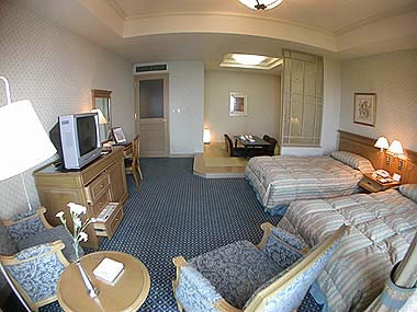 | 今回はサンメンバーズの宿泊権利を使わせてもらいましたので、Bタイプでの宿泊となりました。客室はリクエストの通りB5タイプになりました。客室のテラスから見える瀬戸内海と青い空は本当に綺麗で、夜には引田の町、小豆島、淡路島の明かりが見えました。 |