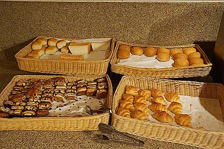 翌朝の食事も、ザ・ロッジ内のイタリア料理レストランで開催されているバイキングでいただく事としました。夕食とは異なり、可もなく不可もない印象でした。 |
