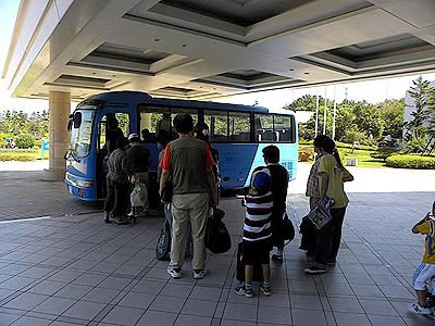 港ではホテルのバスが待機して、宿泊客を無料送迎してくれます