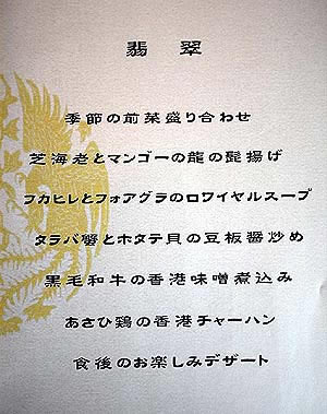 | 翡翠コース(¥7.350−)のお品書き | 私はどこでもビールです プレミアムモルツ ¥861− |
