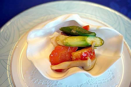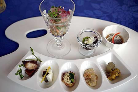| 次男は冷たいウーロン茶 | 子供達はお子様コース ¥3,150− 季節の前菜盛り合わせ |