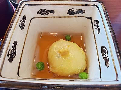 ![]() 先付 自家製汲み上げ豆腐 生姜餡 たまねぎ ミニトマト ブロッコリー |