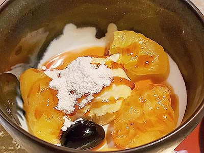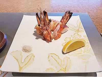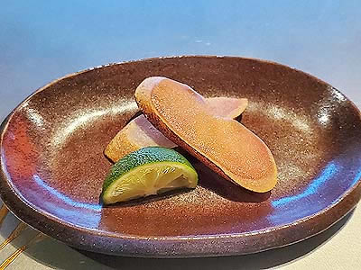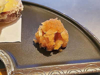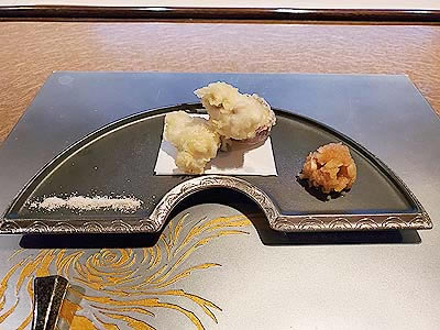 ![]() 河豚白子の天婦羅、鳴門金時の天婦羅 |