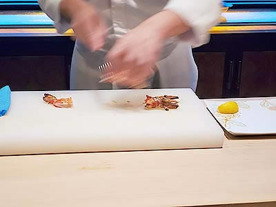 ![]() カウンターではお次の料理を黙々と仕上げていきます |