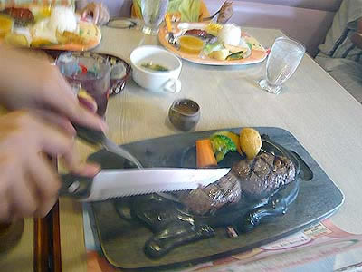 ![]() 店頭で焼かれている名物「げんこつハンバーグ」。 この日は創業価格フェアで、 ライス・ドリンク・スープなどがついて\999でした。 (通常は推定約\1400) このボリュームが人気に秘密の一つのようです。 美味しそう… 早く食べたい… |