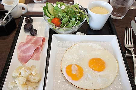 卵料理はスクランブルエッグ、オムレツ、フライドエッグから選びます