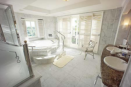 ![]() ダイニングテーブルにはウェルカムシャンパンのグラスと 無料のミネラルウォーター |