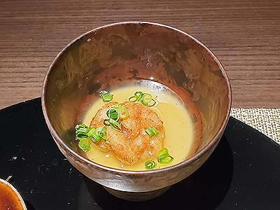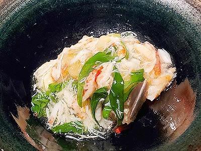 ![]() 磐田のえびいも霞揚げ ずわい蟹と九条ねぎの餡掛け |