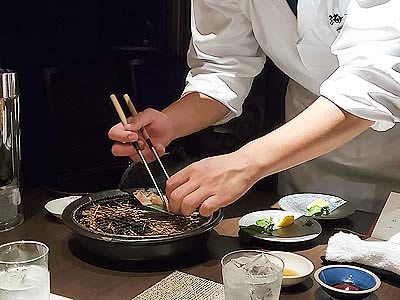 ![]() 中は藁焼き スモーキーな香りが充満します |