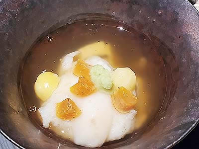 ![]() 駿河湾の甘鯛蕪蒸し 唐墨 銀杏 百合根 |