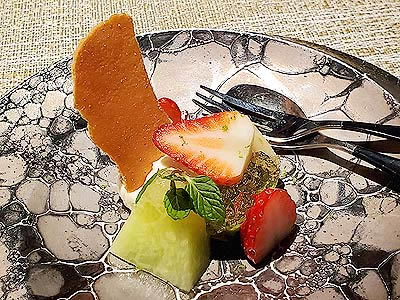 ![]() 静岡いちごと旬のフルーツ レアチーズ ライムのジュレ |