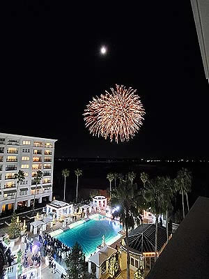 ![]() 年越しカウントダウン打ち上げ花火を待ちわびた |