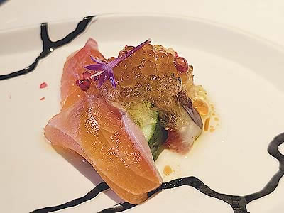 紅富士鱒の瞬間燻製と無花果 美味出汁 鱒いくら