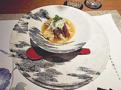 浜名湖産鰻と丸茄子 汲み上げ湯葉の餡掛け