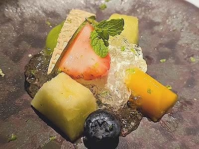 静岡クラウンメロンとマンゴー クリームチーズ ライムジュレ ミント