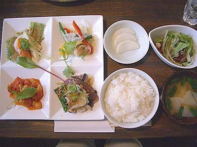 ![]() いろんなものを少しづつ4品プレート なんかヘルシーな昼食。 |