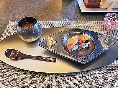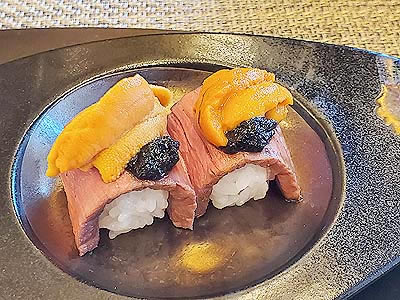 牛雲丹寿司 海苔醤油