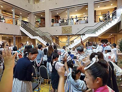 ![]() 生演奏で迫力のある 浮々連の皆様の阿波踊り披露の後は |