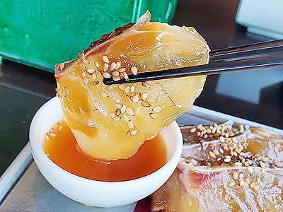 ![]() 【上段】 絹ごし豆腐 卸し生姜 刻み葱 鼈甲餡 |