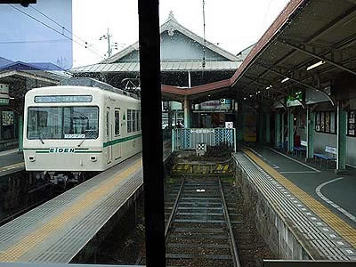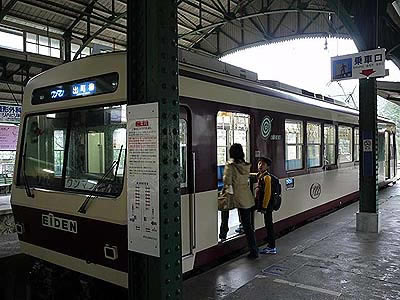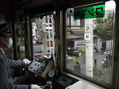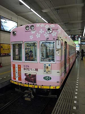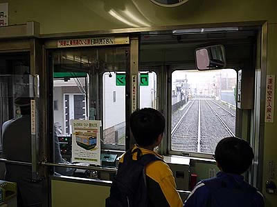 | モボ101形夕子号 | 楽しみにしていた京福電鉄 車両先頭に陣取ります |
