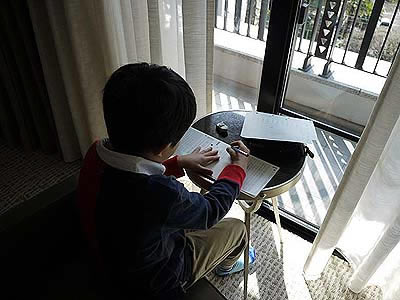 ![]() 朝食の後はお部屋で宿題を |
