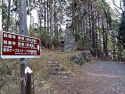 ケーブルカー、ロープウェイを乗り継いで、比叡山山頂に着きましたが、延暦寺までは未だ少し距離があります。 |