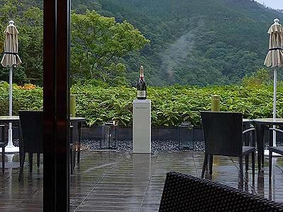 ![]() テラスの中央にはモエ・エ・シャンドンのジャンボボトル |