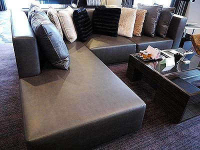 ![]() カウチベッド風のソファー ものすごく沢山のクッションが並んでいます |