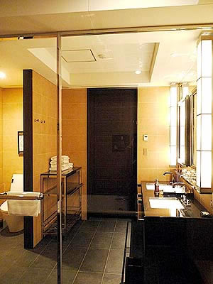 ![]() バスタブのライトスイッチを入れると バスルームの照明が暗くなります |