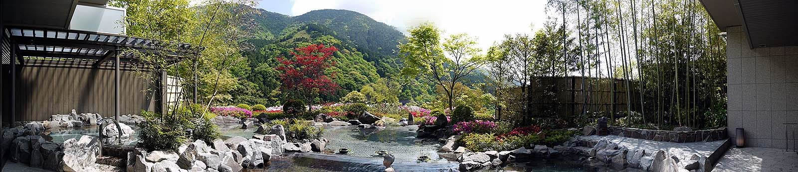 ![]() 内湯からの露天風呂 長男が一人で浸かっています |