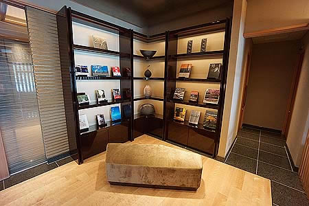 ![]() 南棟からレセプションへ向かう、ガラス張りの通路 |